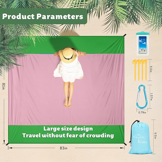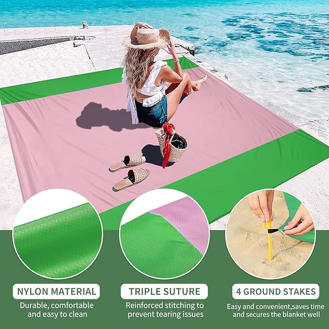 - Beach Blanket Waterproof Sandproof:Dry-Quick,Made of durable ripstop nylon.Can also be used as a sunshade,tent,toddler crawl,Emergency mat,Feel comfortable lying down.Dog's lazy space.