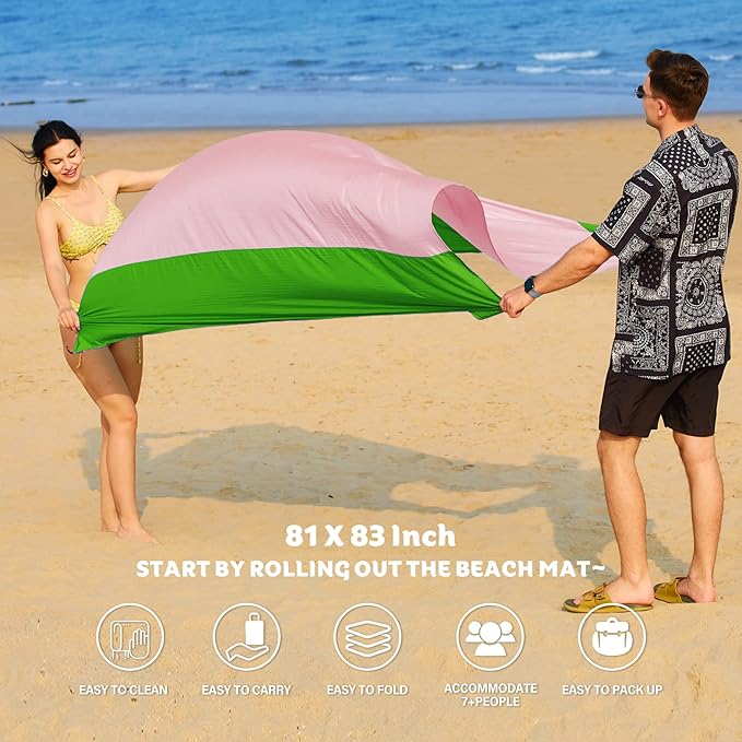 Nylon Beach Blanket Waterproof Sandproof Oversized,Extra Large 81" X 83" ' Beach Mat,Sand Free Beach Blanket 1-7 Adults Lightweight Durable for Travel Camping Hiking Picnic
