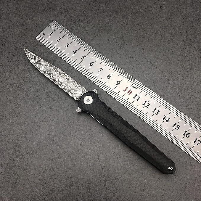 HUAAO Damascus Pocket Knife with Sheath, Gentleman Knife ceo Knife with 2.9’’ Damascus Blade, Carbon Fiber Handle, Liner Lock, Flipper Knife for EDC Outdoor Camping(black)