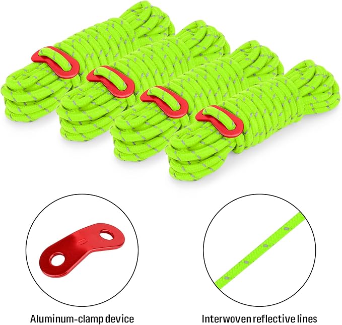 - 【Reflective guy lines with adjuster】bonus 4 pieces 13 ft reflective tent lines to reinforce and replace your lost or damaged tent lines. Each tent line features an aluminum adjuster and reflects when illuminated by light.