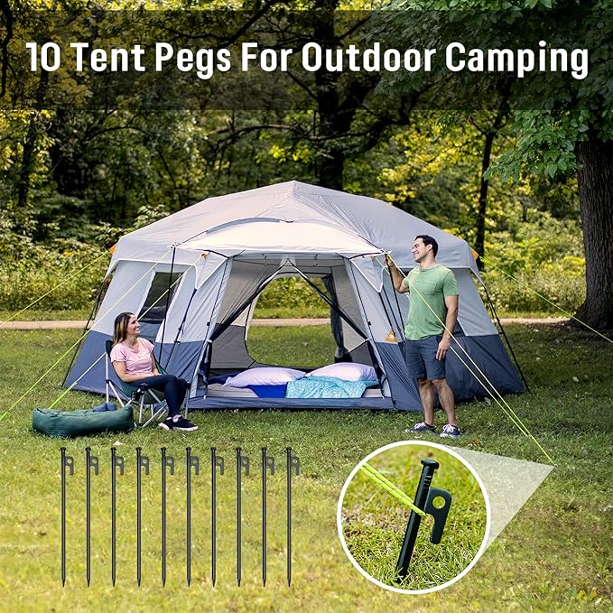 - 【Heavy duty tent pegs】Heavy-duty set of 10 tent pegs - 11.81" in length, 9mm in diameter. Made of high quality steel with black finish, these tent pegs are durable to use and enough to stand up to the wind.