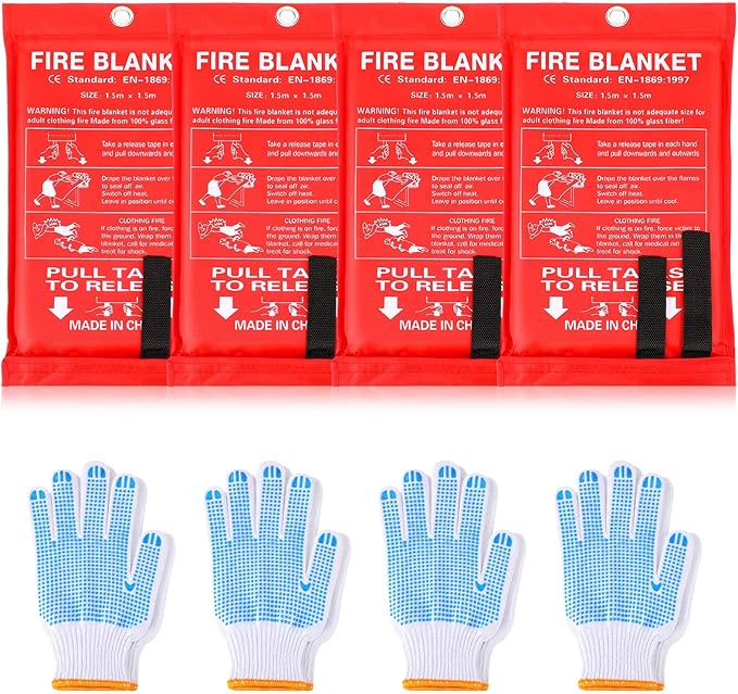 - Package Includes: the package contains 4 pieces of 59 x 59 inches fire blankets and 4 pairs of gloves, which can help you stop stove top fires quickly, and they are easy to use and clean, the fire blankets set is an important helper to your home fire extinguisher