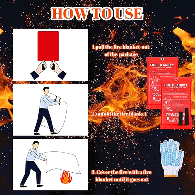 - Easy to Use: simply release the fire retardant blankets and slowly cover the fire area, soon the fire blanket will extinguish the fire by cutting off oxygen, let the emergency fire blanket sit there for a few seconds to suffocate the fire, turn off the heat source, throw it away after the temperature is down