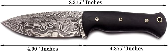 - 🗡:KNIFE DIMENSIONS: It is best as a Hunting, Survival, Camping, Skinning and Tracking Knife a complete Package of an Outdoor Adventures. 8. inch Total Length, 4 inches Blade and 4.375 inches Handle.