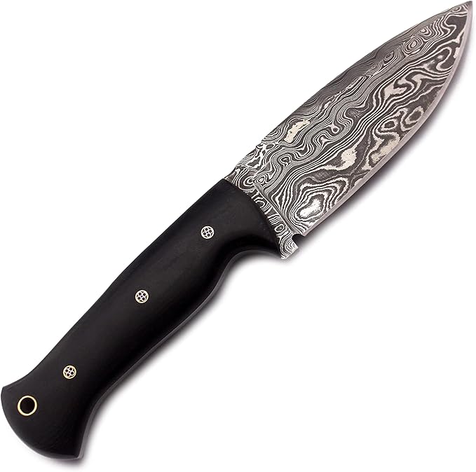Handmade Damascus Steel Knife for Hunting,Survival,Camping,Bushcraft,and Fishing- Fixed Blade- Dagger with Drop Point Full Tang Micarta Handle-with Cowhide Leather Sheath DCX 22 -300