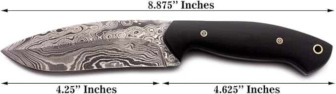 - 🗡:KNIFE DIMENSIONS: It is best as a Hunting, Survival, Camping, Skinning and Tracking Knife a complete Package of an Outdoor Adventures. 8.875 inch Total Length, 4.25 inches Blade and 4.625 inches Handle.