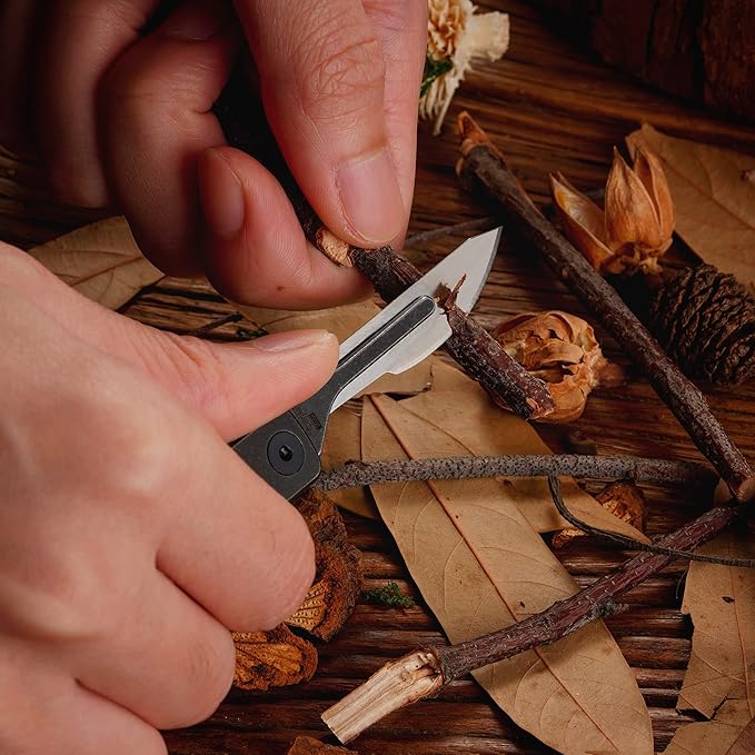 - SHARP AND PRECISE: Adopts replaceable 24 carbon steel blade, it provides razor sharp, precise cutting performance, 90°stop design protect your fingers from being cut, perfect for fruit peeling, paper cutting, pencil sharpening, package opening, rope cutting, wood carving, flower trimming and crafts processing