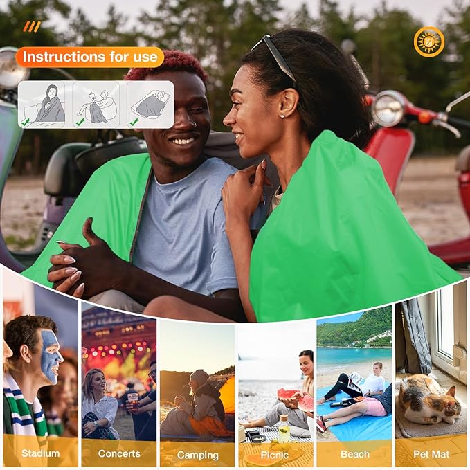 - ✅ 𝗘𝗫𝗧𝗥𝗔 𝗟𝗔𝗥𝗚𝗘& 𝗨𝗟𝗧𝗥𝗔-𝗟𝗜𝗚𝗛𝗧:This large outdoor camping blanket measures 79 x 59 inches (equivalent to a Queen Size Mattress) is large enough to wrap up to 2 adult. The large waterproof outdoor blanket is specially designed with a hook&loop fastener, so that you can wear it on your body to free your hands.