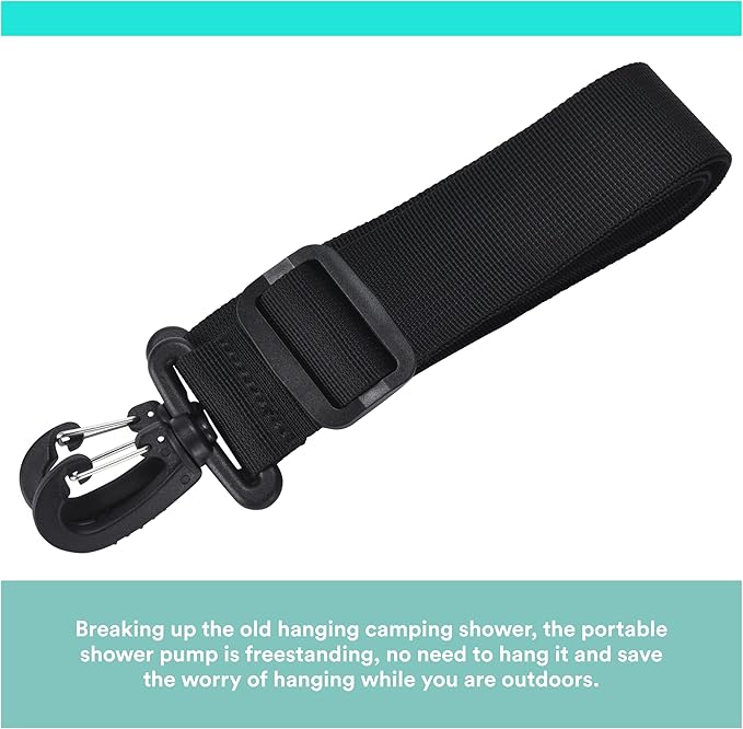 - Extra-long Hose And Foot Pump For High Pressure Showering: The portable shower camp hose is extra-long, allowing for pumping while the shower bag is hung from a height or sits on a table. This provides higher pressure for showers, making it ideal for beach showers or dog showers at any time