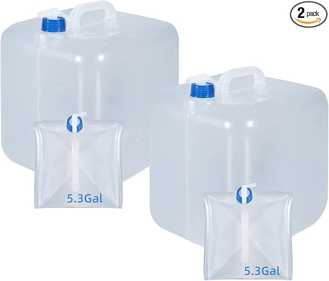 5.3 Gallon Collapsible Water Container with Spigot, Foldable Cube Water Jugs Portable Water Storage for Outdoors Camping Hiking (2pack)