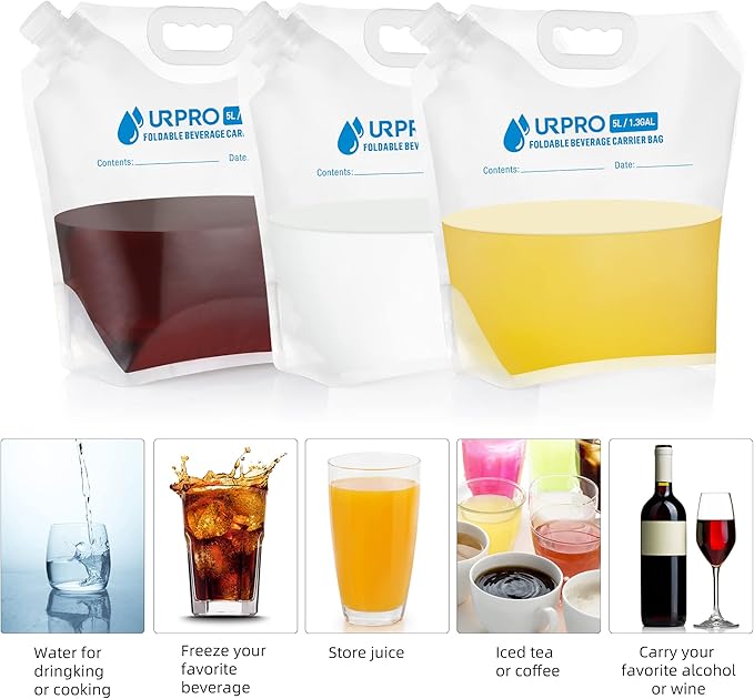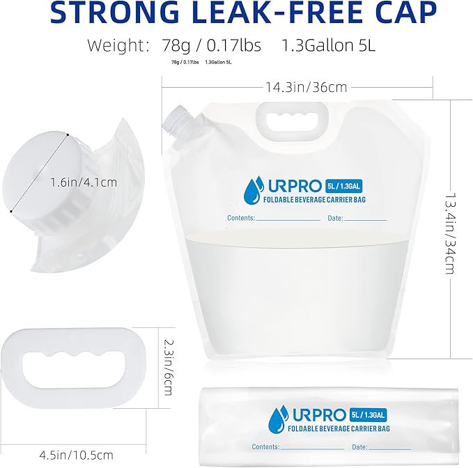 - PROFESSIONAL UNIQUE DESIGN – Its plastic wider stance allows the water bag stand on its own which is stable & durable. Large 4.1cm/ 1.6" opening makes adding liquids, ice or dry goods easier. Leak-proof sturdy design can withstand heavy pressure & falls. 10.5cm/ 4.5” large comfortable wide-grip handle. This carrier can be refrigerated or frozen. It also includes liquid name/ date label to mark contents.