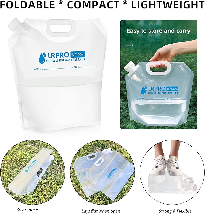 - COLLAPSIBLE, LIGHTWEIGHT, PORTABLE, SPACE SAFE AND REUSABLE - Foldable space saving design store away easily and travel with backpacks conveniently. It remains soft and flexible without deformation after storing beverage. It retains shape and is easy to fill, dry, drain and reuse. Ergonomic handle makes holding and transport easily.