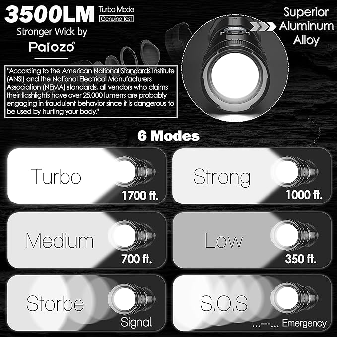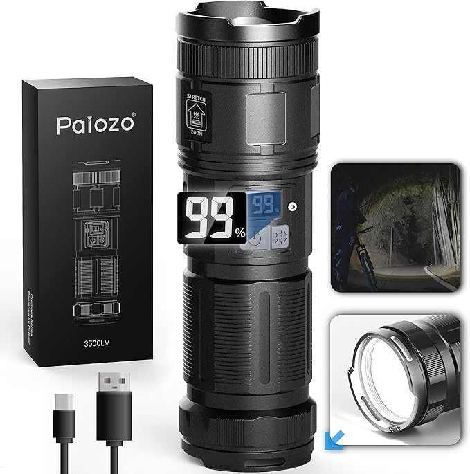 - [ 3500LM (max.) Output ]: Palozo ZM-100 flash light - the pinnacle of high-performance illumination. With a staggering 3500LM output, it delivers a level of clarity that is simply incomparable. Whether you find yourself in the depths of the wilderness or navigating the darkest city streets, it provides an unparalleled level of visibility, allowing you to seamlessly tackle any challenge with ease as camping essentials & accessories.