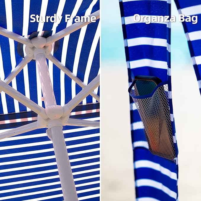 - Stability Structure: Features 4 large built-in sand pockets on each corner to make the beach cabana stable when filling it with sand. The canopy is supported by 4 strong steel ribs and is vented on the top to facilitate air flow for more stability