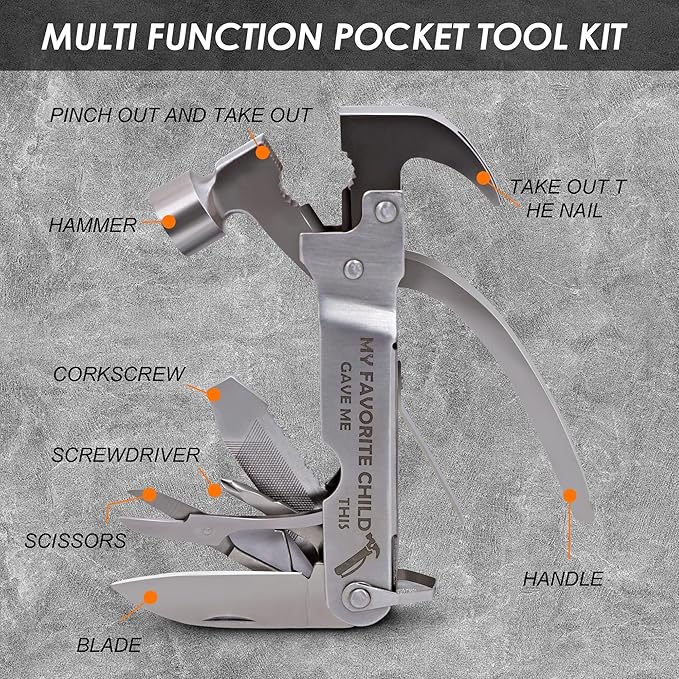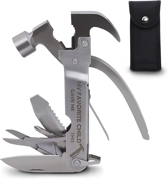 Fathers Gifts for Dad from Daughter Son MY FAVORITE CHILD GAVE ME THIS Hammer Multitool Camping, 12 In 1 Pocket Multi Survival Tools Cool Gadgets Christmas Birthday Gifts for Men Dad boyfriend