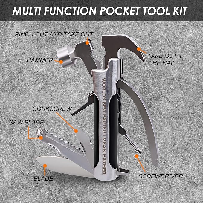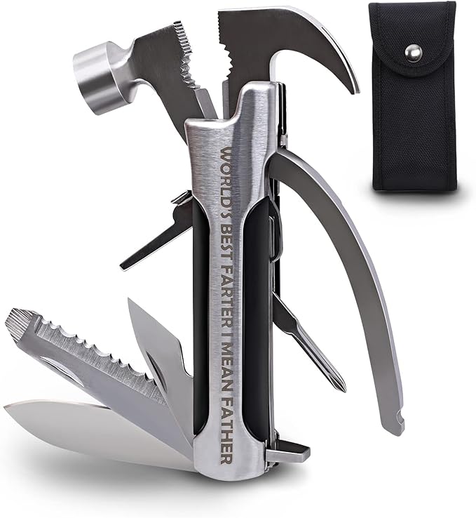 Fathers Gifts for Dad from Daughter Son WORLD'S BEST FATHER I MEAN FATHER Hammer Multitool Camping, 12 In 1 Pocket Multi Survival Tools Cool Gadgets Christmas Birthday Gifts for Men boyfriend