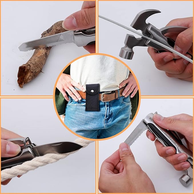 - 【Multi-purpose features】 Our multitool hammer features many handy instruments including a hammer, pliers, serrated knife, saw, wire cutter, prying claw, nail file, bottle opener, flat and phillips head screwdrivers.