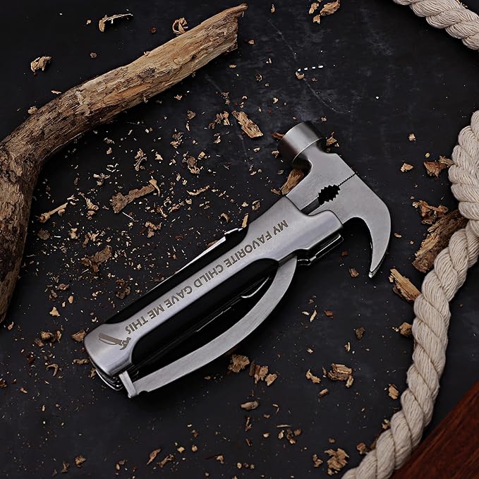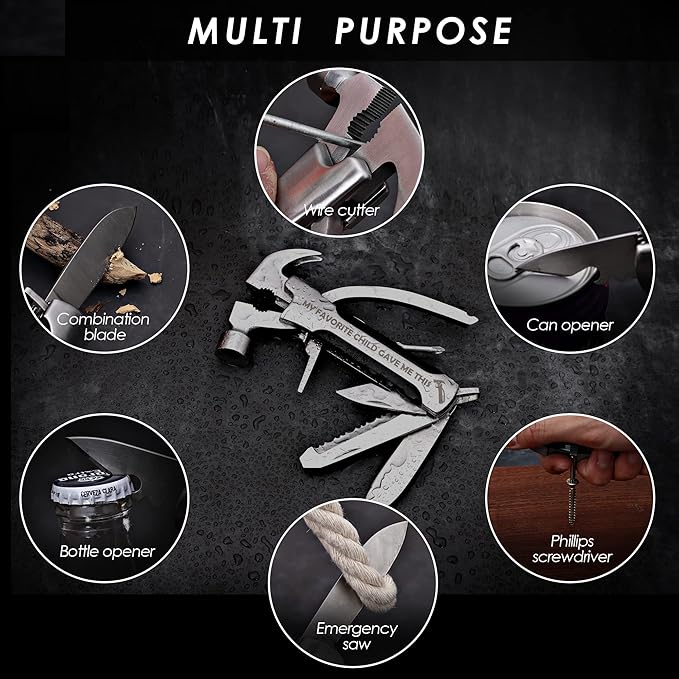 Fathers Gifts for Dad from Daughter Son MY FAVORITE CHILD GAVE ME THIS Hammer Multitool Camping, 12 In 1 Pocket Multi Survival Tools Cool Gadgets Christmas Birthday Gifts for Men Dad boyfriend