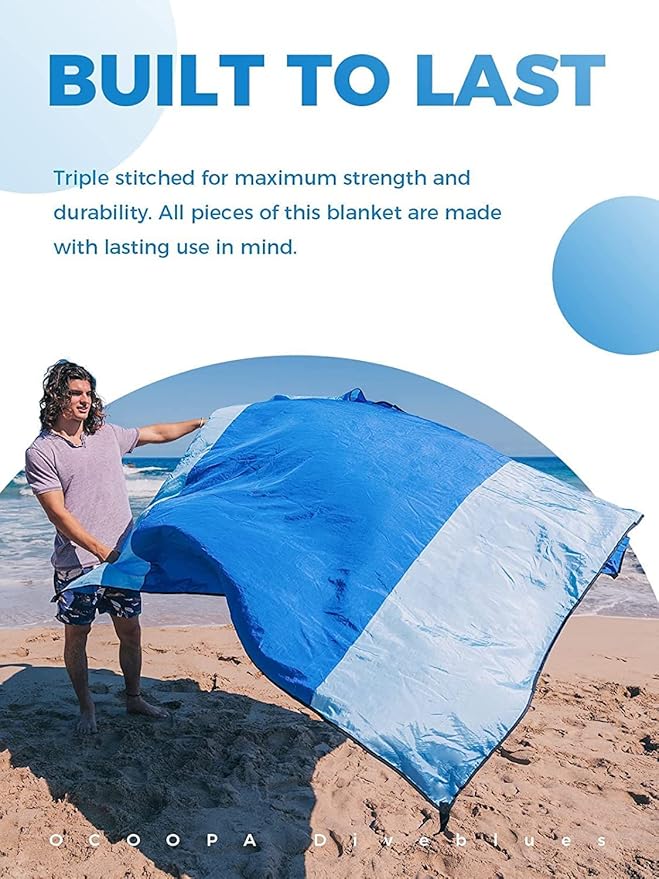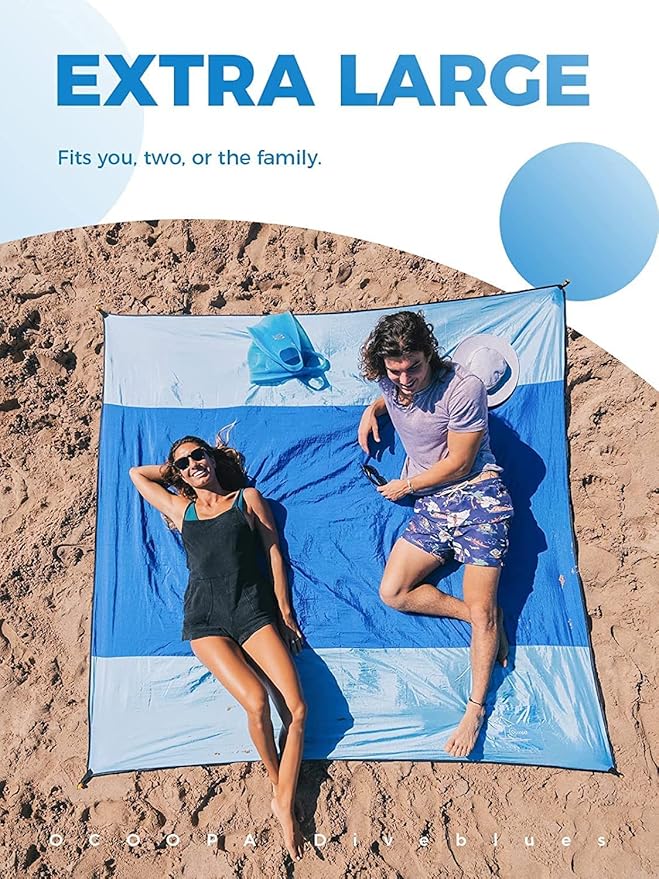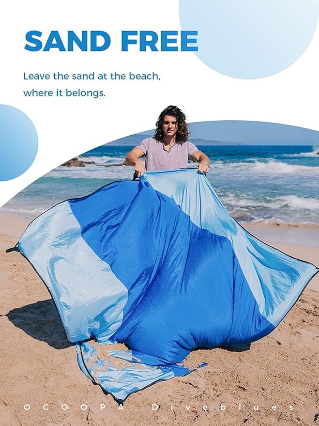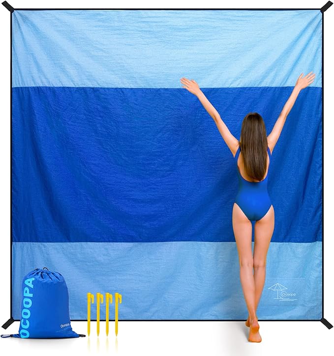 OCOOPA Extra Large Beach Blanket, Sand Free, Large Oversized Camping Mat, Comfortable Parachute Nylon, Cozy& Chic, Compact& Light, 4 Stakes&1 Travel Bag, S09
