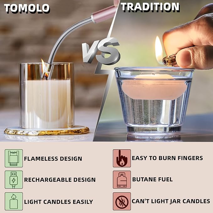 - 【Windproof & Flameless 】Tomolo lighter uses plasma arc windproof flameless technology,Suitable for use in strong wind and wet environments, can be used for Candle, Grill, Camping, etc.