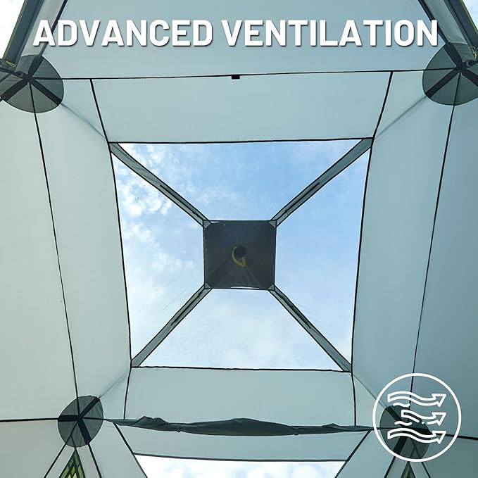 - Excellent Ventilation: The easy up tent has 1 top mesh skylight and 4 mesh windows that provide good visibility and ventilation. 2 D-shaped doors for easy access. Enhanced by 2 side air vents, condensation inside the cabin tent is reduced, ensuring a consistently dry and comfortable environment