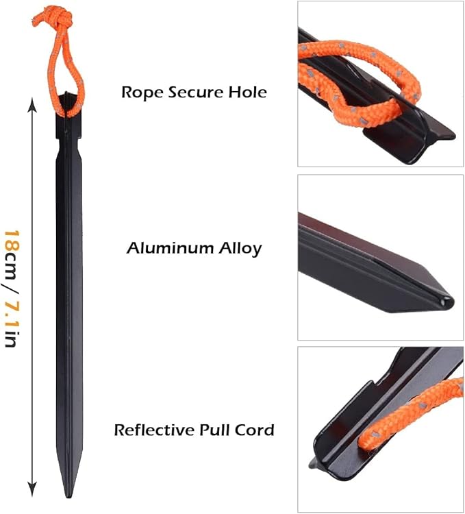 - 【Widely Applicable】Our tent pegs can be widely used in camping, yard, inflatable , etc.Such as camping tent,canopy,gazebos,shelter,screen house,picnic blankets,Christmas holiday inflatable products and so on.
