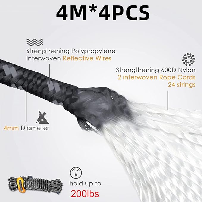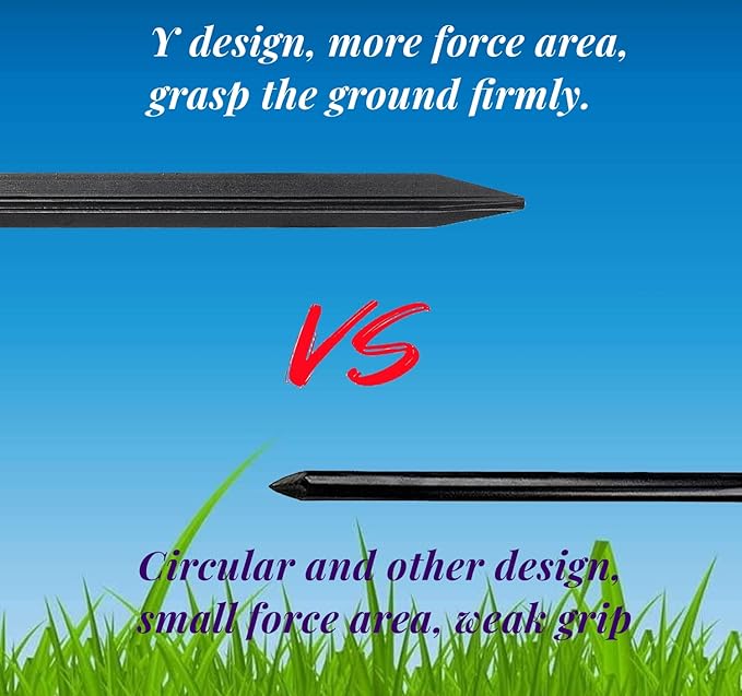 - 【Product Size】Y-shaped design for a firmer grip, 7.1inches long stakes. The size of the tent rope is 4m*4mm. All sizes fully consider the applicable requirements of customers.