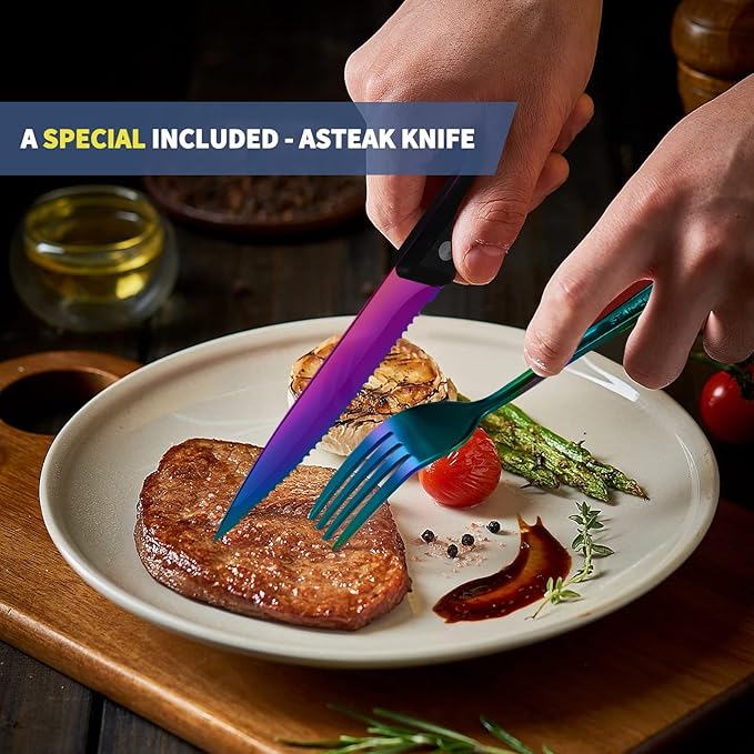 Portable Travel Utensils Set,Reusable Utensils,Travel Camping Cutlery Set,Stainless Steel Flatware Set with Case,Lunch Boxes Workplace Camping School Picnic (Rainbow)