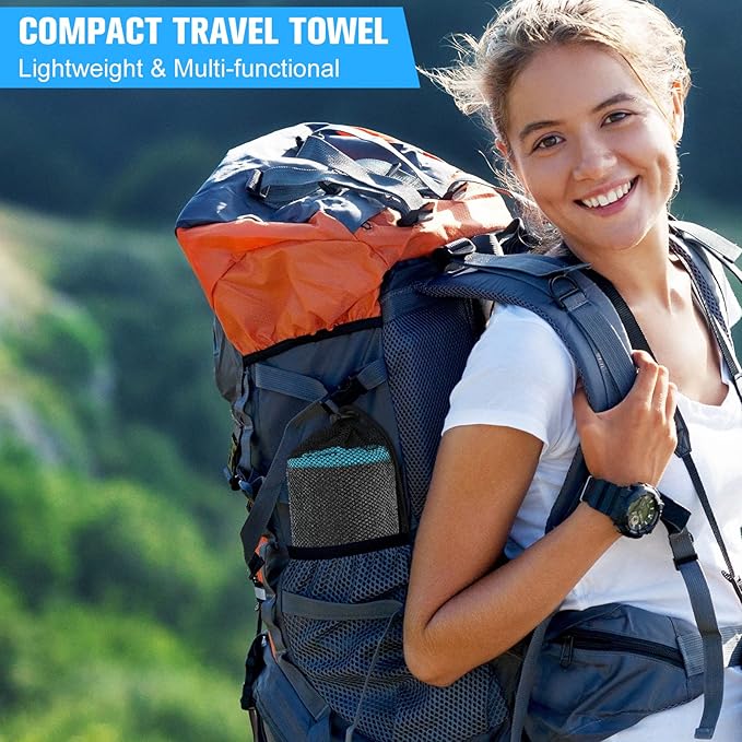 - Soft and Absorbent: these camping towels are mainly made of microfiber, comfortable and soft, breathable and absorbent, quickly drying your sweat or hair, giving you a comfortable and dry camping or fitness experience