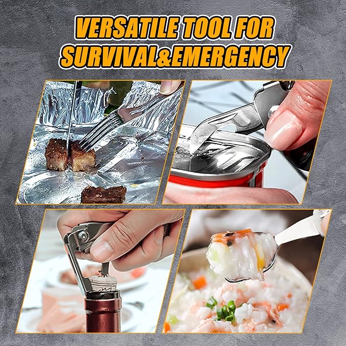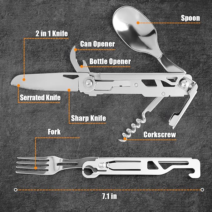 - Included Components : Fork, Corkscrew, Can opener, 2 in 1 Knife (serrated & sharp), Spoon