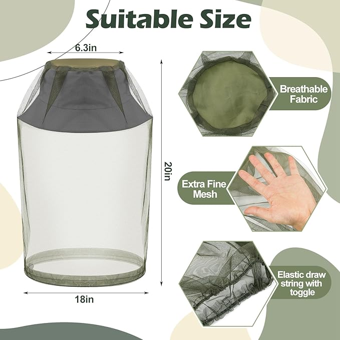 - Detailed Size Information: the safari hat with net measures approximately 22.4 x 22.4 inches/ 57 x 59 cm with an elastic drawstring to fit any hat; The neck drawstring at the bottom can tighten the hat around your neck to really keep mosquito out