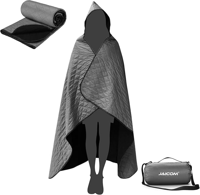 - HOODED BLANKET DESIGN: Our stadium blanket is designed with convenient buttons and a rain-proof hood that easily transforms into a hooded blanket on rainy days, effectively keeping the rain and wind out and your body dry and warm. Plus, with the ability to combine two blankets together, you can create an extra-large blanket measuring a spacious 110" x 79" Whether you're enjoying the great outdoors or snuggled up indoors, our blanket is the perfect companion for any adventure.