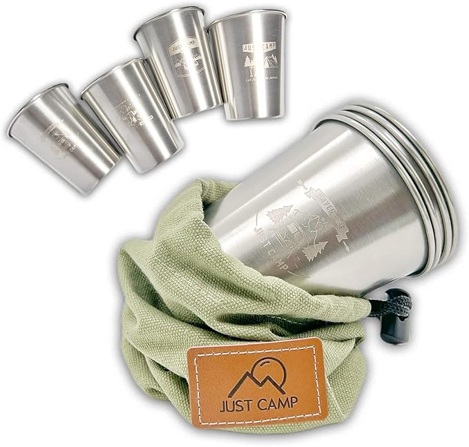 - 🍹Built for the great outdoors - These 4 cups are stackable and come with a sweet-looking 12 amps canvas staorage bag, so they won't take up too much space or get dinged up during transport.