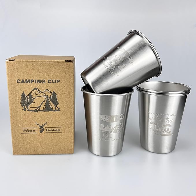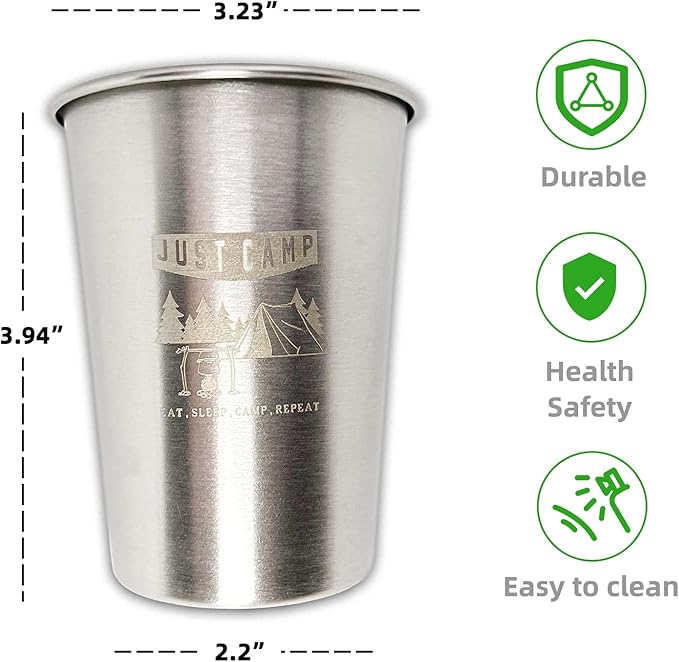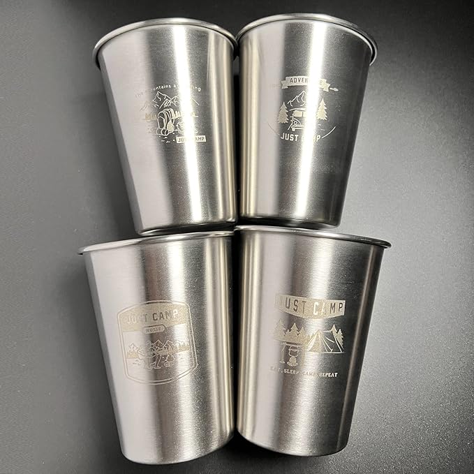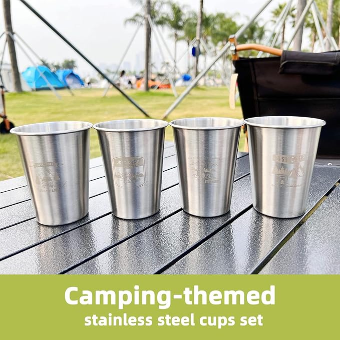 - ⭐Eye-catching design -4 stainless steel cups with laser-engraved camping-themed designs that are absolutely stunning and will certainly enhance the joy of camping. They also make a great gift option for occasions such as birthdays and Father's Day.