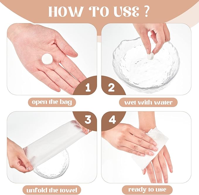 - Easy to Use: these compressed towel tablets are simple to use, you just need to put them into the cold or hot water, they will expand into a large towel, although they are disposable, but you can use them many times