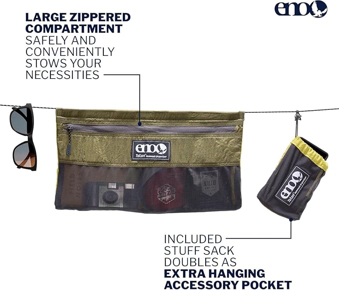 ENO Talon Hammock Organizer - Hanging Organizer for Camping & Backpacking Hammocks - Organizer Bag for Water Bottles, Travel Essentials, and Hiking Essentials