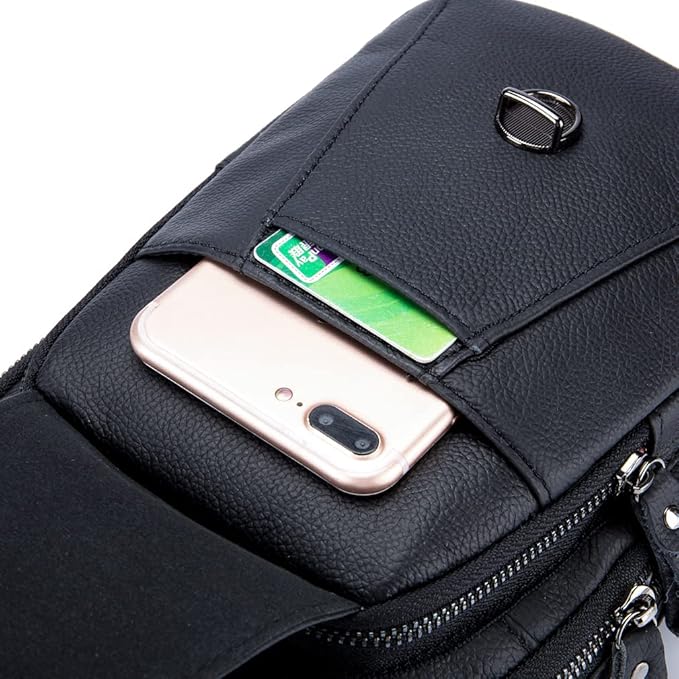 KPYWZER Vintage Leather Sling Bag Bags for Men Women Backpack Shoulder Messenger Crossbody Outdoor Travel Hiking Camping Tactical Chest Pack Daypack Black