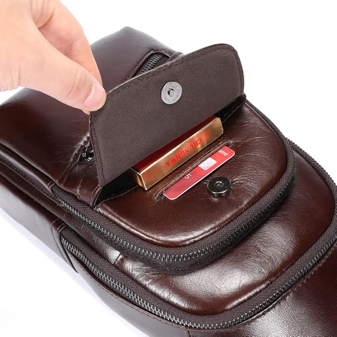 - 【Structure and Material】:Durable & Vintage Leather Crossbody Sling Bag: This sling bag is made of cowhide genuine leather, nice and smooth texture, really soft & comfortable to touch, fabric lining, zip closure, leather and excellent workmanship, stylish, vintage, fashion and luxury, which shows your outstanding temperament when business/travel.