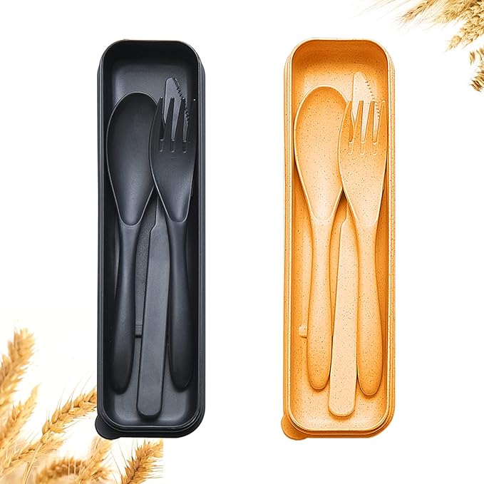 - WIDELY USED - Wheat straw material is more lightweight to carry, you can easy to put them in bento box, backpacks and other bags. In addition to daily use, the portable dinnerware sets are also perfect for camping, travel, picnic and working lunch.