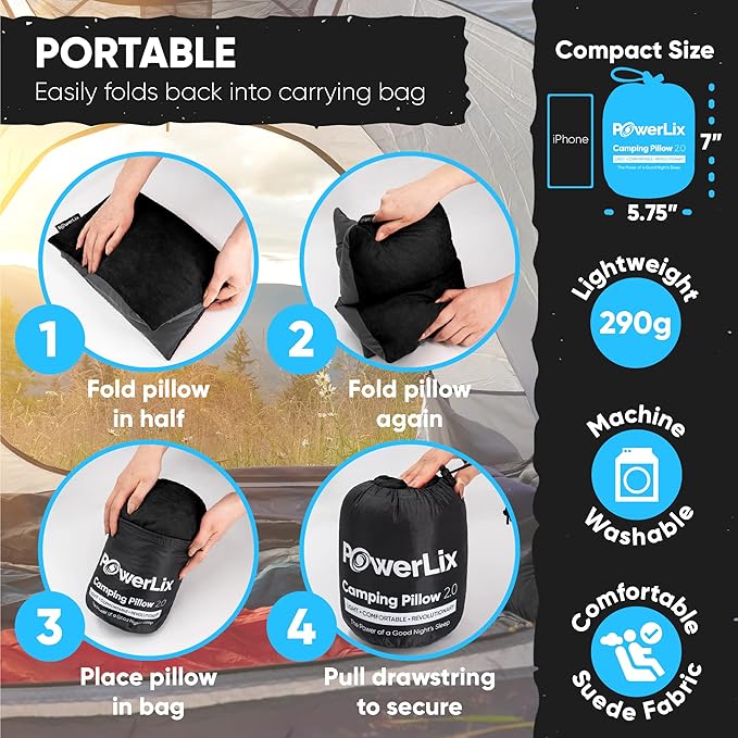 - GREAT GIFT AND 100% SATISFACTION GUARANTEE - a great gift for your friends and families, for adventurous travelers, on birthday, Father's day, Mother's Day, Valentine's Day, who needs a comfortable and peaceful sleep experience. Powerlix pillow is ultralight, cozy, packable, and perfect for any journey. Make sure to stay well-rested on our signiture travel and camping pillow!