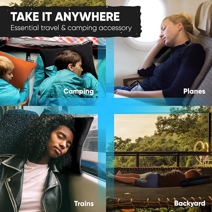 - MULTIPURPOSE and ECONOMICAL - whether sleeping under stars in the mountains, in your boat on the seas, tenting at national parks, staying on a long flight, sleeping in car, or taking a nap and relax at school or office - Powerlix travel camping pillow is your perfect companion. For anyone, not limited to travelers, backpackers, hikers, outdoor enthusiasts, students, and office workers. We're working on the mission to care for our sleep experience whereever you are.