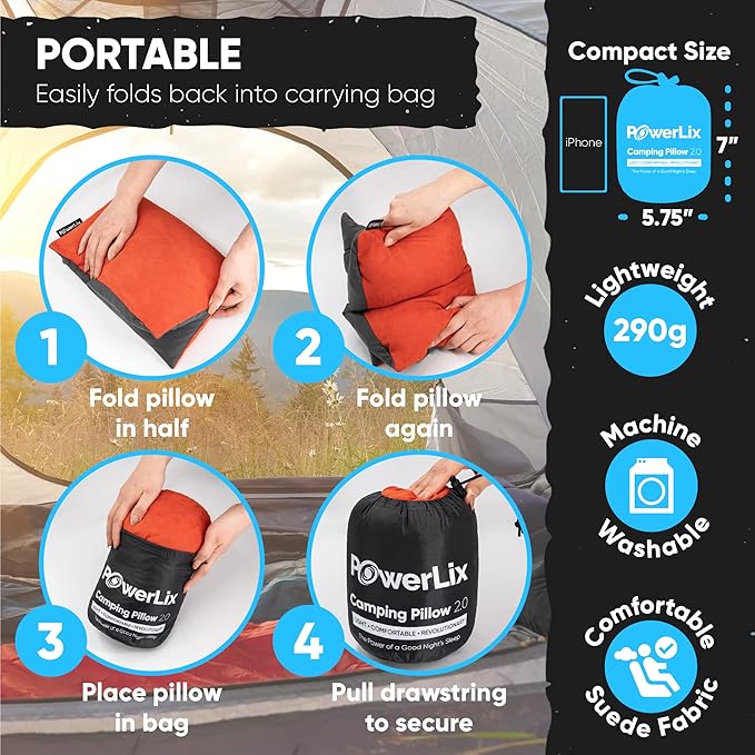 - GREAT GIFT AND 100% SATISFACTION GUARANTEE - a great gift for your friends and families, for adventurous travelers, on birthday, Father's day, Mother's Day, Valentine's Day, who needs a comfortable and peaceful sleep experience. Powerlix pillow is ultralight, cozy, packable, and perfect for any journey. Make sure to stay well-rested on our signiture travel and camping pillow!