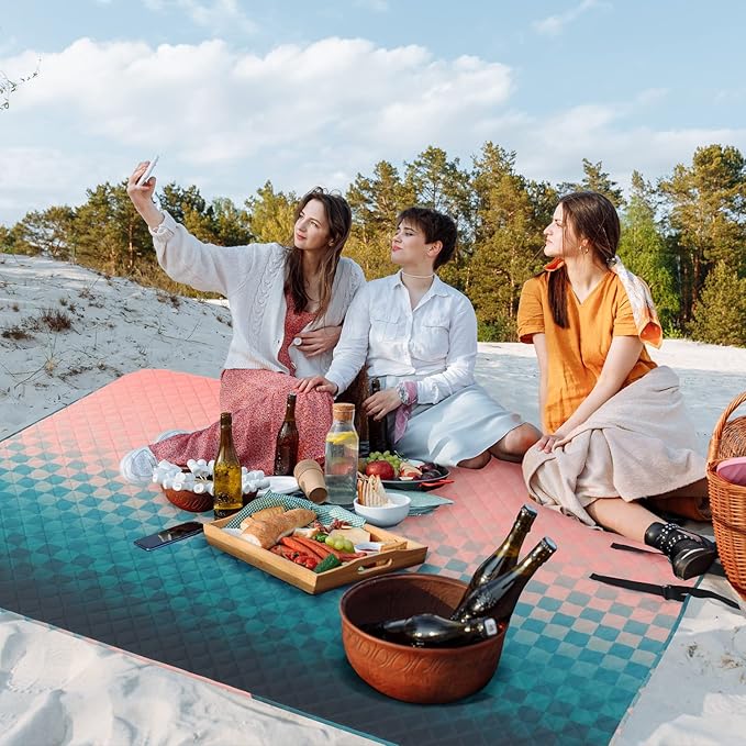 - 【EASY TO CARRY AND STORE】Our extra large picnic blanket can be easily folded. The folded size is only 7.8*14.5 inches. You can store it in any corner of your home or in the trunk of your car. Its weight is only 2.4lb, equivalent to the weight of a bottle of water. At the same time, we are equipped with a drawcord, which is convenient to carry
