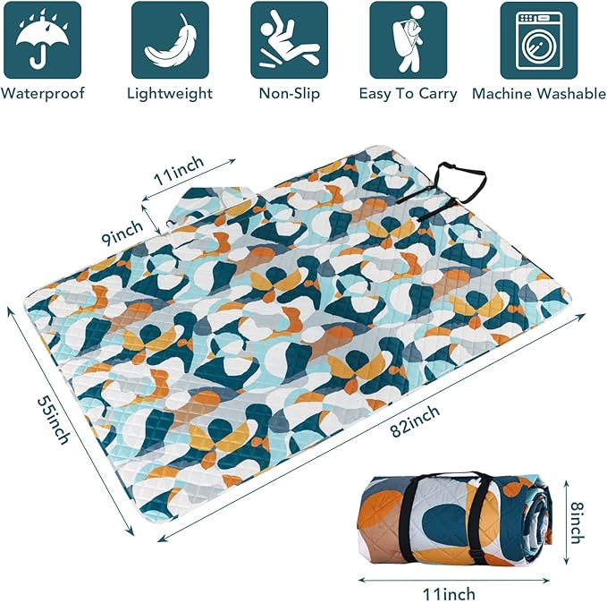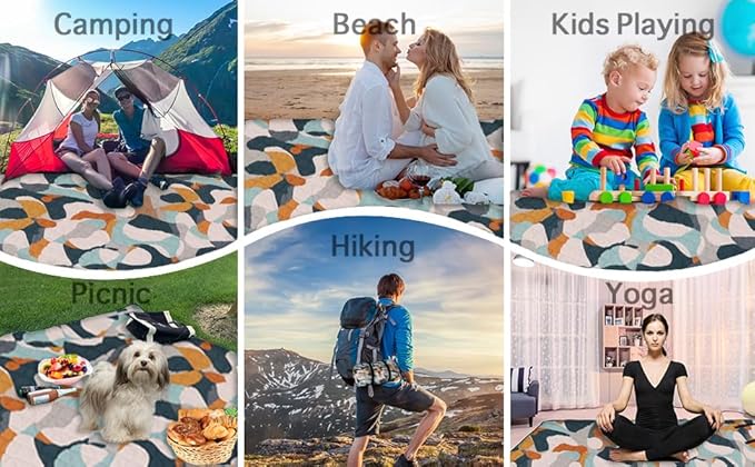 - 【EASY TO CARRY AND STORE】Our extra large picnic blanket can be easily folded. The folded size is only 7.8*14.5 inches. You can store it in any corner of your home or in the trunk of your car. Its weight is only 2.4lb, equivalent to the weight of a bottle of water. At the same time, we are equipped with a drawcord, which is convenient to carry