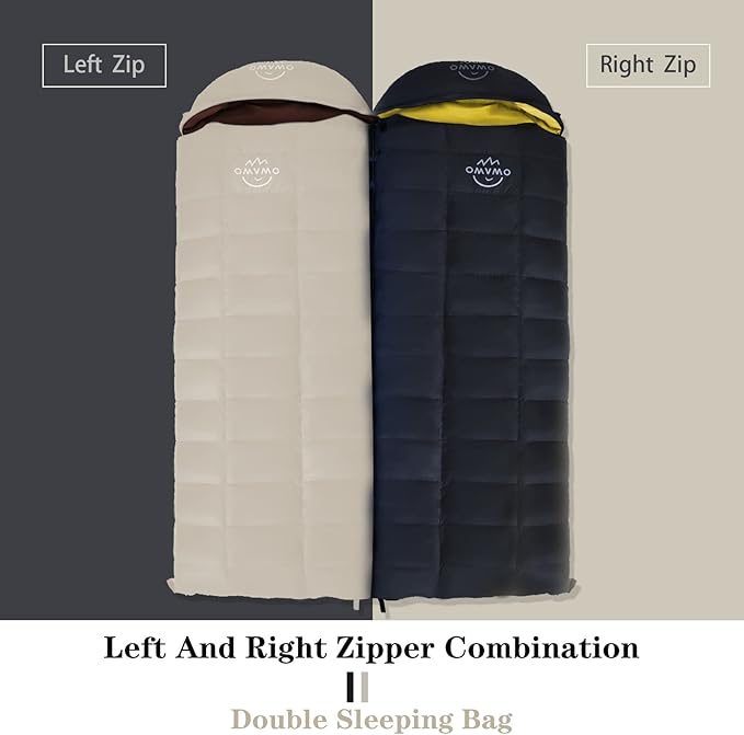 - 【High-quality materials】: 1. The shell of the sleeping bag is made of 400T 20D nylon spinning, which is soft and comfortable. The nylon is treated with DWR coating, making it tear-resistant, easy to clean, and preventing the down drill out. 3. Using genuine YKK zippers, along with anti-snag sliders, durable and smooth. 4. Filled with natural white goose down fiber. Compared with synthetic fiber sleeping bags, down fiber sleeping bags are more breathable, dry, lightweight, and warm.