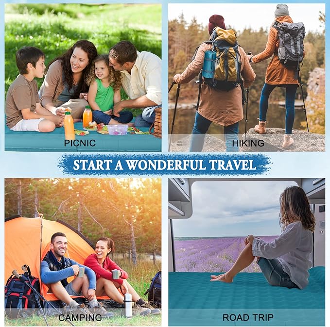 - 【Good Sleep and Family Use】The self inflating sleeping pad doesn't make a lot of noise and can provide enough cushion, giving you a good sleep. The camping mattress pad is especially suitable for family use, increasing family fun and getting closer to family. Great for camping, backpacking, car trips, hiking, picnic, and also for home and office use.