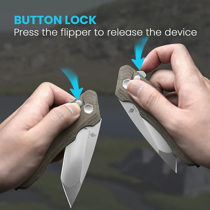 - Safe: Secure button lock mechanism of this hunting knife ensures blade in place during use and gives the folding knife a stylish design while keeping the user safe.
