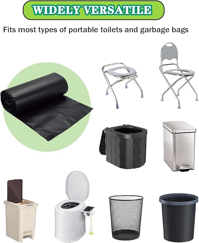 - Widely Versatile🚽: Potty bags for portable toilets fit most 5 or 8-gallon portable toilets, framed toilets, or bucket toilets. You can also use it as an eco-friendly composting garbage bag or toilet bag at home.