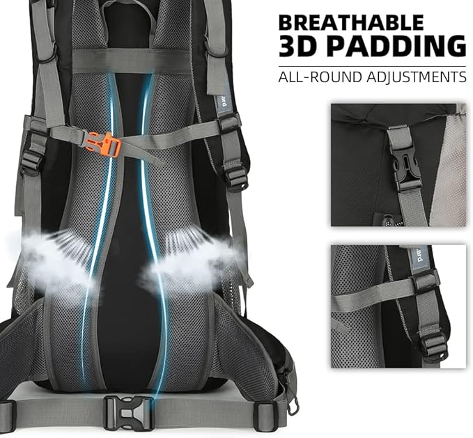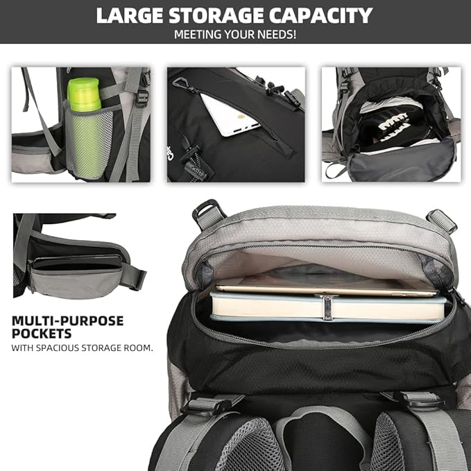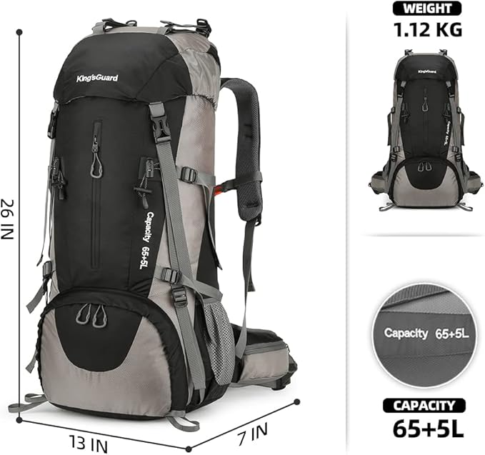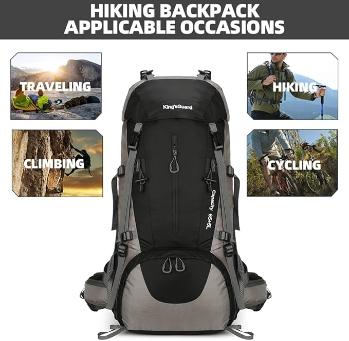 - 【Large Capacity Backpack】Measuring [23.6 * 11.8 * 7.9 inches], this travel backpack with its large 70 litre capacity is the ideal backpack for anyone on a 3-5 day adventure. It is suitable for both men and women and meets the size requirements of most airlines. An essential backpack for hiking, camping, backpacking, trekking, climbing and travelling.