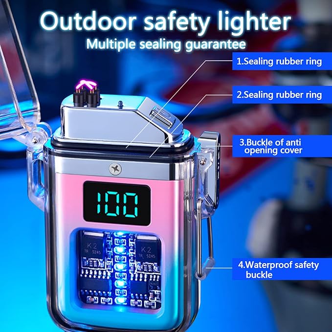 - ✅【IP56 Outdoor waterproof】▶ Multiple seal protection, no water leakage. The IP56 grade is dustproof and waterproof, making it more convenient to use in water without worry. The whole lighter must be fastened when placed in water. This is a long term water lighter, perfect for camping, hiking, climbing, fishing and other outdoor water sports.